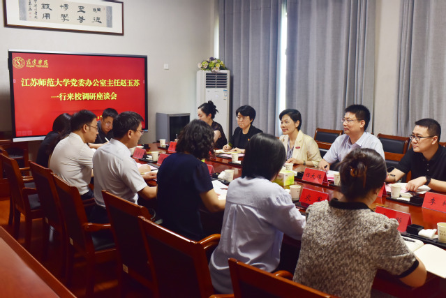 调研座谈会上,党委办公室主任赵玉苏与宿迁学院办公室主任沈席强分别介绍了支部基本情况和党建业务融合发展的特色亮点、实践经验与心得体会。双方支部成员聚焦进一步提升部门服务发展、服务决策、服务落实能力,围绕综合考核、督查督办、信息报送、机要保密等办公室工作进行深入交流研讨。