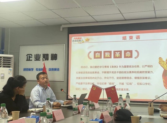 理论联学,共享培训资源。机关第十党支部书记王海峰带头学习新修订的《中国共产党纪律处分条例》(以下简称《条例》),以习近平总书记关于全面加强党的纪律建设的重要论述为指引,使每位党员同志深入理解和掌握《条例》的精神实质,增加党员的组织观念和纪律观念,认识到遵守党的纪律是每个党员应尽的义务和责任。